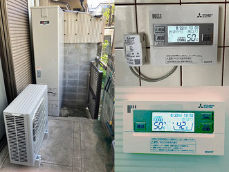 京都府京都市右京区の戸建て住宅にてエコキュート薄型タンクの取替え(交換)工事をいたしました。三菱電機370Lフルオート SRT-HPT37WZ5 から、Sシリーズ370Lフルオート SRT-S376UZ へ交換をしました。UV-LEDユニット搭載なので湯はり後にきれいなお湯をキープする循環運転を実施、ふろ配管を通るお湯に深紫外線を照射するキラリユキープ機能付きです。年間給湯保温効率3.0、給湯省エネ2025補助金対象のエコキュートです。
