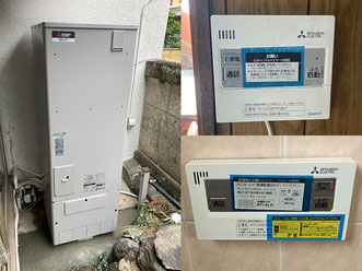 奈良県磯城郡川西町の戸建て住宅のエコキュートへ取替え(交換)工事をいたしました。三菱370Lフルオート薄型タンク SRT-HPT374WFZ から、370Lフルオート角型タンク SRT-S376 へ交換をしました。UV-LEDユニット搭載なので湯はり後にきれいなお湯をキープする循環運転を実施、ふろ配管を通るお湯に深紫外線を照射するキラリユキープ機能付きです。年間給湯効率3.8、給湯省エネ2025事業補助金対象のエコキュートです。
