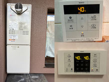 兵庫県宝塚市のマンションにて屋外式給湯器の取替え(交換)工事をいたしました。ノーリツ24号高温差し湯給湯器 GQ-2427AWX から、ノーリツ後継機種 GQ-2427AWX-T-DX へ交換をいたしました。