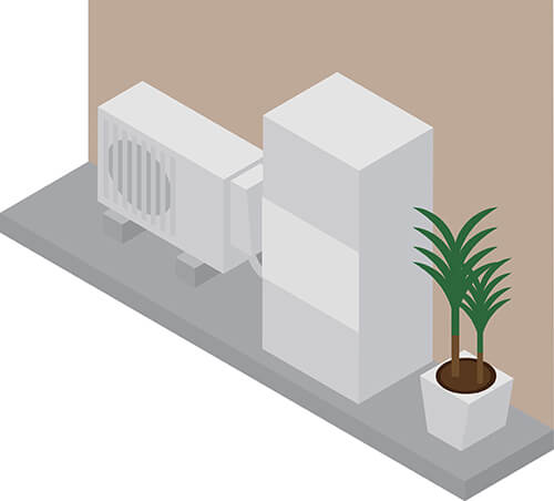 エコキュートは、空気中の熱を利用してお湯をつくる「ヒートポンプ技術」を使った給湯器です。電気だけで水を温めるのではなく、外の空気から熱を取り込んで効率よくお湯をつくるため、従来の電気給湯器に比べて消費電力を大幅に抑えられます。さらに深夜の安い電力を活用する仕組みが多いため、光熱費の削減につながるのです。